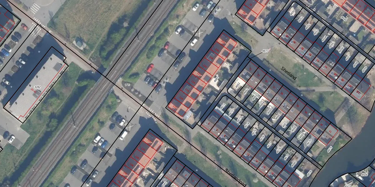 Het perceel waarop Shetland 116 staat heeft een oppervlakte van 965 m². Dit is een groot perceel. De perceeloppervlakte wordt geregistreerd door het Kadaster. Gedetailleerde informatie over de maten van dit perceel kunt u vinden in het rapport Kadastrale kaart met maatvoering van Shetland 116.