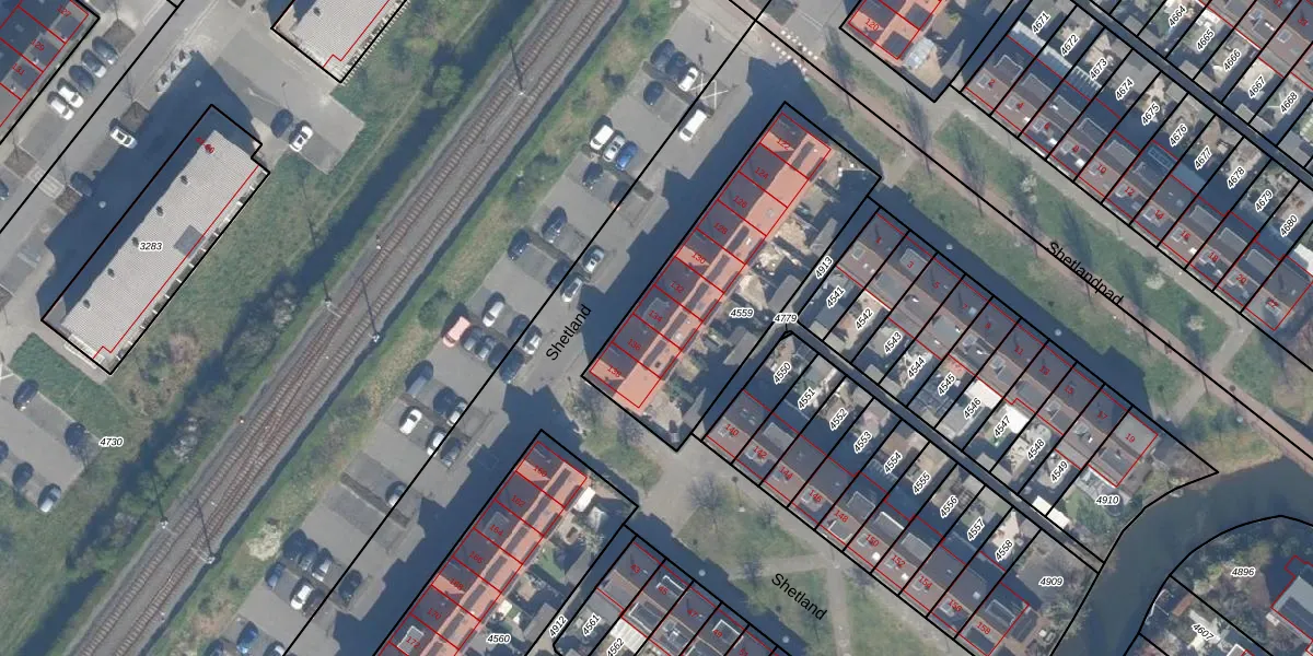 Het perceel waarop Shetland 134 staat heeft een oppervlakte van 967 m². Dit is een groot perceel. De perceeloppervlakte wordt geregistreerd door het Kadaster. Gedetailleerde informatie over de maten van dit perceel kunt u vinden in het rapport Kadastrale kaart met maatvoering van Shetland 134.