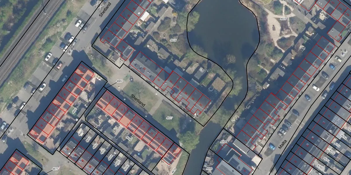 Het perceel waarop Shetland 56 staat heeft een oppervlakte van 4157 m². Dit is een zeer groot perceel. De perceeloppervlakte wordt geregistreerd door het Kadaster. Gedetailleerde informatie over de maten van dit perceel kunt u vinden in het rapport Kadastrale kaart met maatvoering van Shetland 56.