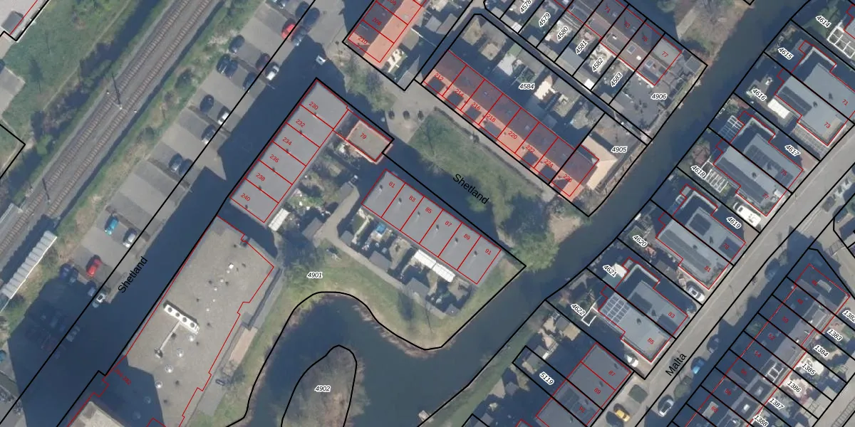Het perceel waarop Shetland 85 staat heeft een oppervlakte van 4290 m². Dit is een zeer groot perceel. De perceeloppervlakte wordt geregistreerd door het Kadaster. Gedetailleerde informatie over de maten van dit perceel kunt u vinden in het rapport Kadastrale kaart met maatvoering van Shetland 85.