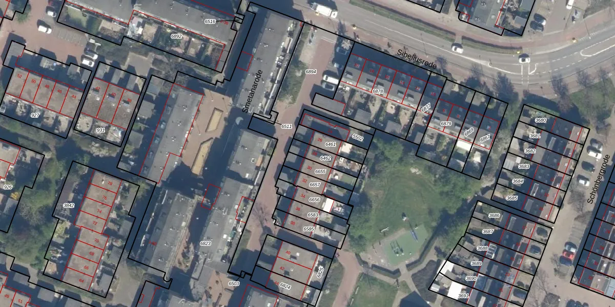 Gebruik de zoekbalk of klik op een perceel voor informatie over de adressen binnen dit perceel.