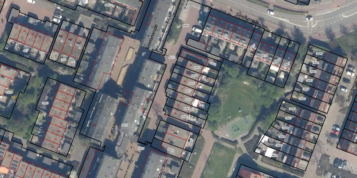 Gebruik de zoekbalk of klik op een perceel voor informatie over de adressen binnen dit perceel.