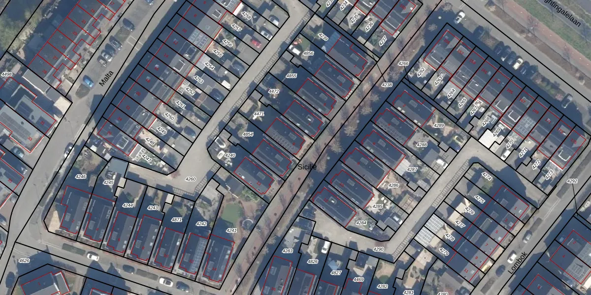 Gebruik de zoekbalk of klik op een perceel voor informatie over de adressen binnen dit perceel.