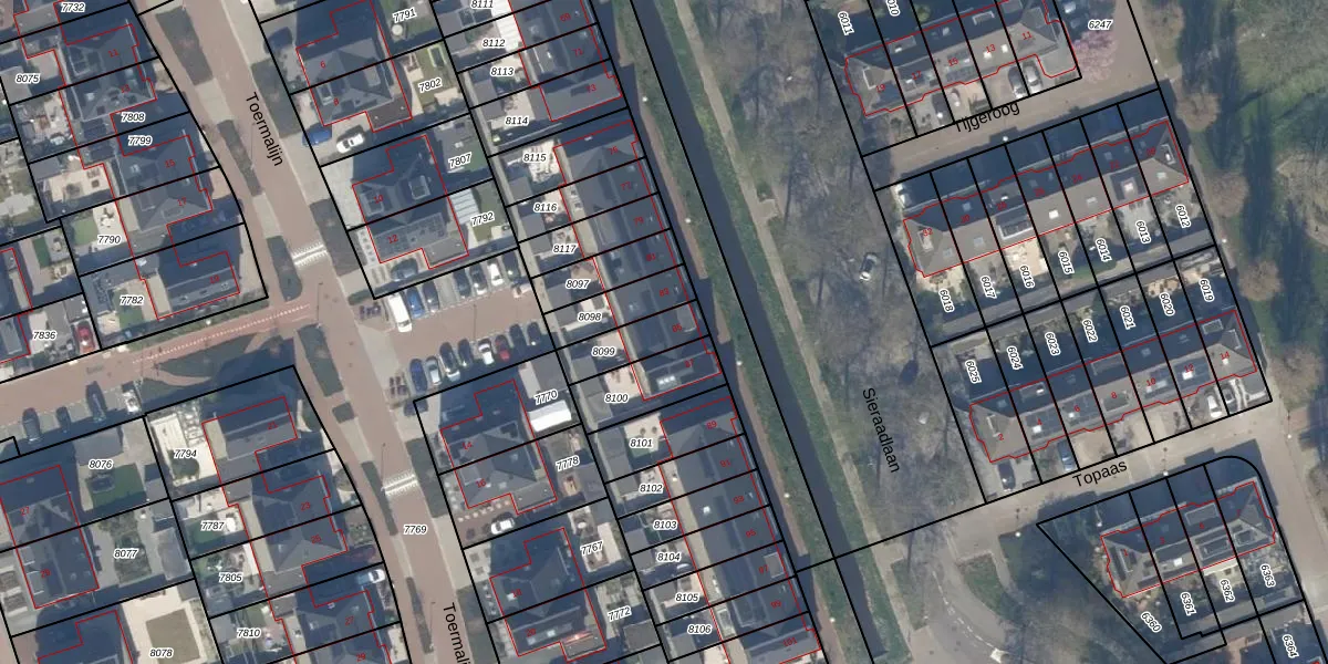 Gebruik de zoekbalk of klik op een perceel voor informatie over de adressen binnen dit perceel.