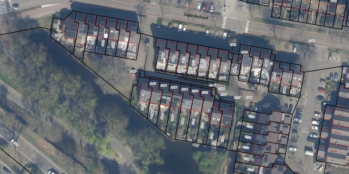 Gebruik de zoekbalk of klik op een perceel voor informatie over de adressen binnen dit perceel.