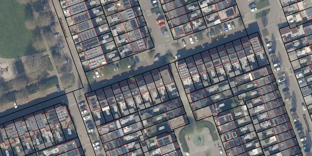 Gebruik de zoekbalk of klik op een perceel voor informatie over de adressen binnen dit perceel.