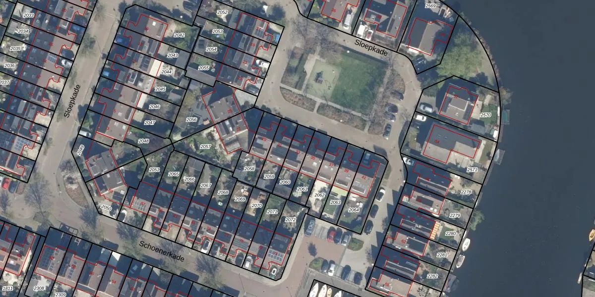 Het perceel waarop Sloepkade 33 staat heeft een oppervlakte van 150 m². Dit is een middelgroot perceel. De perceeloppervlakte wordt geregistreerd door het Kadaster. Gedetailleerde informatie over de maten van dit perceel kunt u vinden in het rapport Kadastrale kaart met maatvoering van Sloepkade 33.