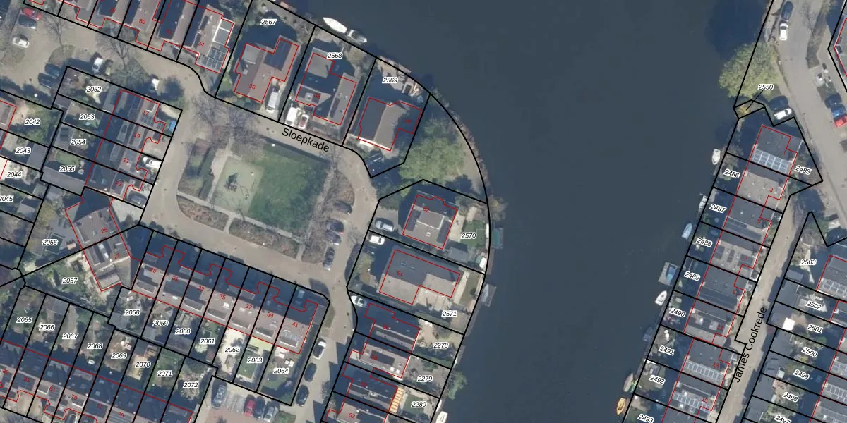 Het perceel waarop Sloepkade 52 staat heeft een oppervlakte van 401 m². Dit is een groot perceel. De perceeloppervlakte wordt geregistreerd door het Kadaster. Gedetailleerde informatie over de maten van dit perceel kunt u vinden in het rapport Kadastrale kaart met maatvoering van Sloepkade 52.