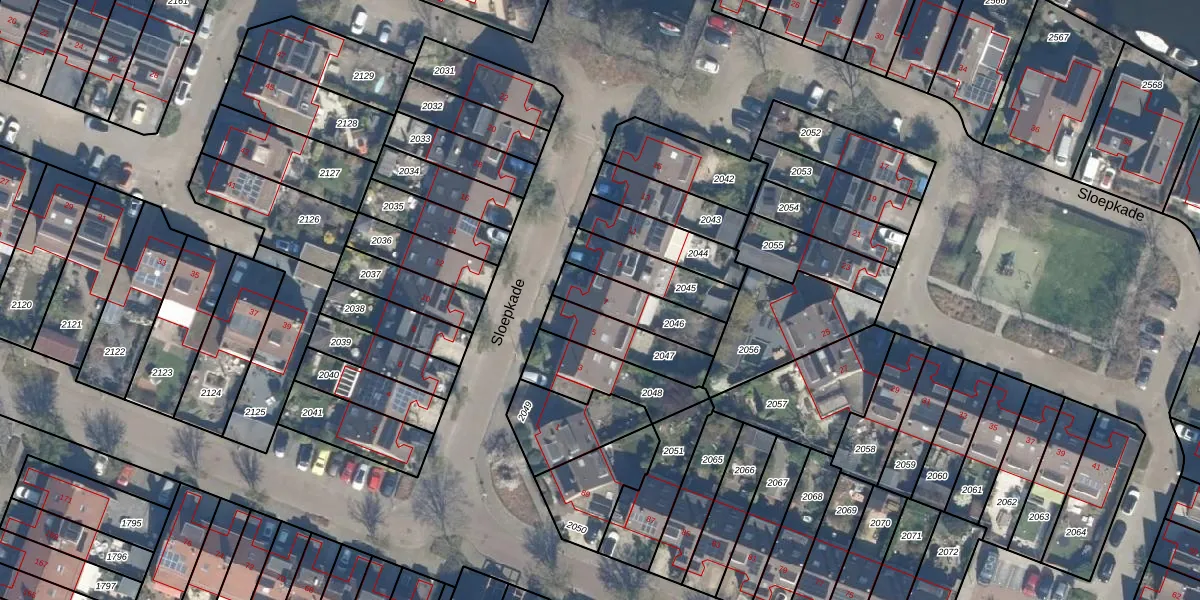 Het perceel waarop Sloepkade 7 staat heeft een oppervlakte van 173 m². Dit is een middelgroot perceel. De perceeloppervlakte wordt geregistreerd door het Kadaster. Gedetailleerde informatie over de maten van dit perceel kunt u vinden in het rapport Kadastrale kaart met maatvoering van Sloepkade 7.