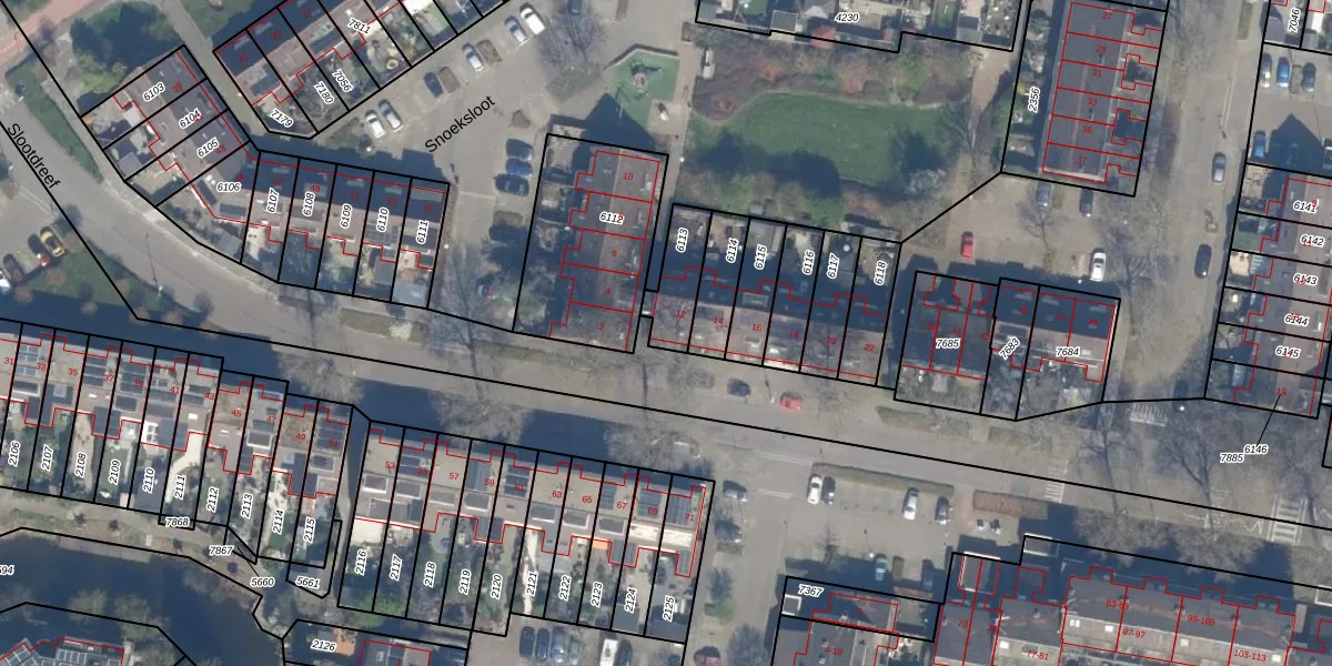 Gebruik de zoekbalk of klik op een perceel voor informatie over de adressen binnen dit perceel.