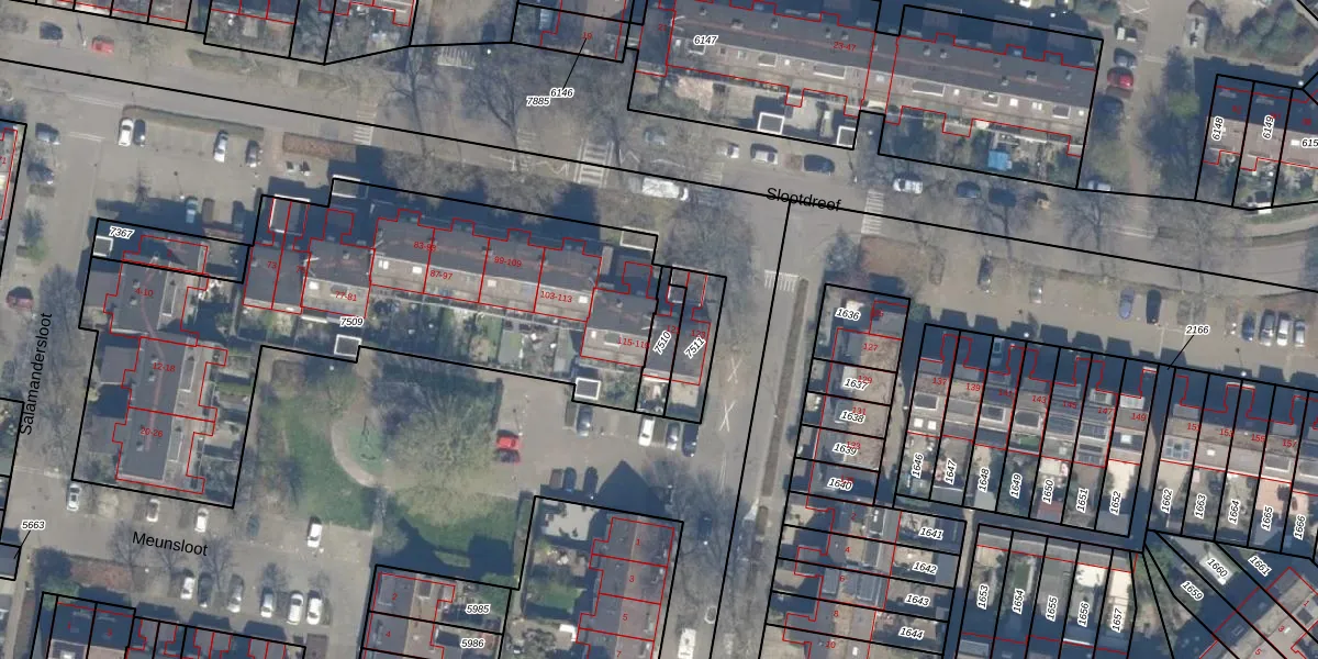 Het perceel waarop Slootdreef 121 staat heeft een oppervlakte van 89 m². Dit is een klein perceel. De perceeloppervlakte wordt geregistreerd door het Kadaster. Gedetailleerde informatie over de maten van dit perceel kunt u vinden in het rapport Kadastrale kaart met maatvoering van Slootdreef 121.
