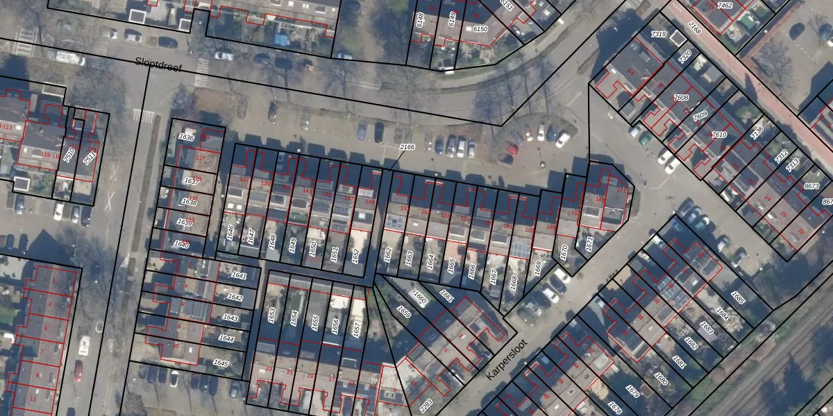 Gebruik de zoekbalk of klik op een perceel voor informatie over de adressen binnen dit perceel.