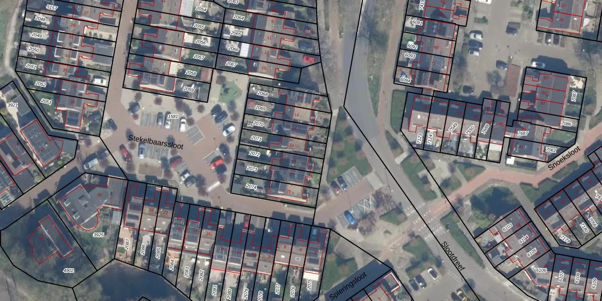 Gebruik de zoekbalk of klik op een perceel voor informatie over de adressen binnen dit perceel.