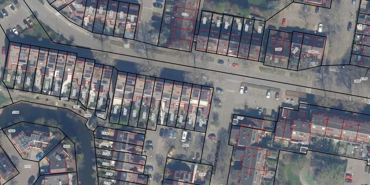 Gebruik de zoekbalk of klik op een perceel voor informatie over de adressen binnen dit perceel.