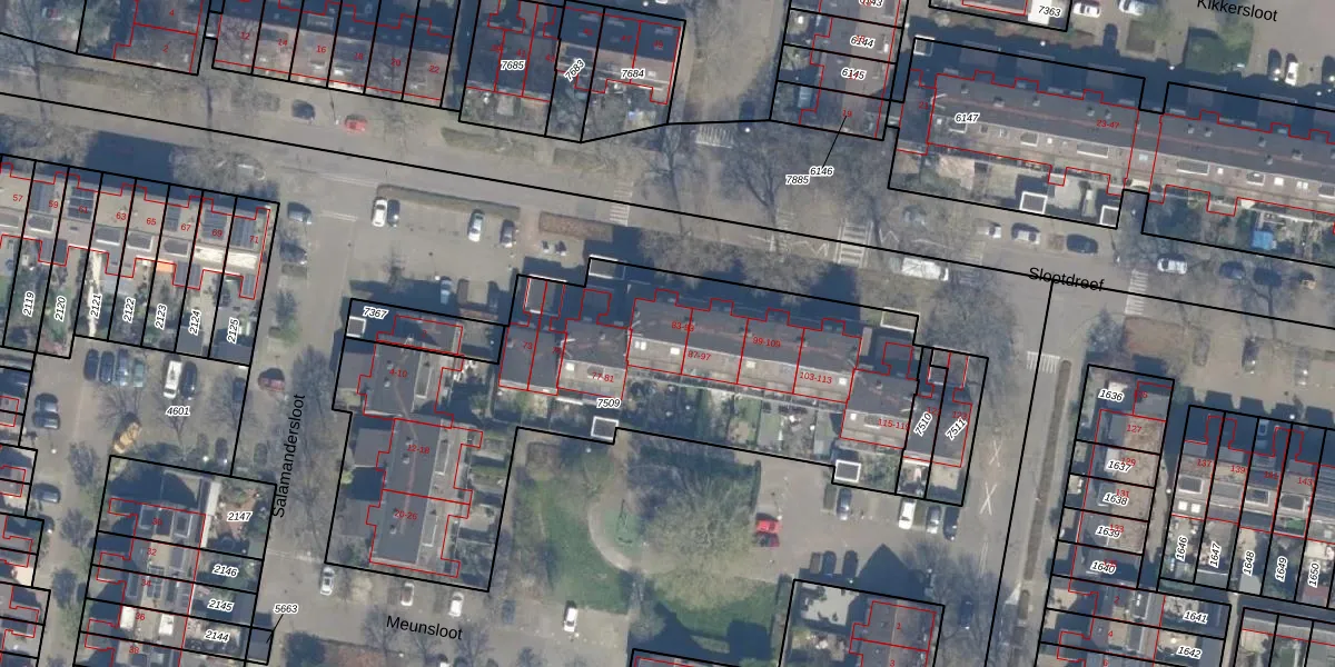 Het perceel waarop Slootdreef 85 staat heeft een oppervlakte van 2366 m². Dit is een zeer groot perceel. De perceeloppervlakte wordt geregistreerd door het Kadaster. Gedetailleerde informatie over de maten van dit perceel kunt u vinden in het rapport Kadastrale kaart met maatvoering van Slootdreef 85.