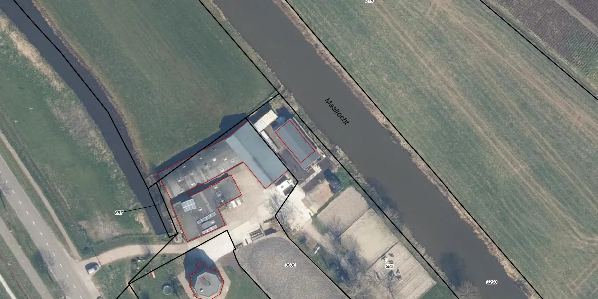 Het perceel waarop Slootweg 5-A staat heeft een oppervlakte van 2888 m². Dit is een zeer groot perceel. De perceeloppervlakte wordt geregistreerd door het Kadaster. Gedetailleerde informatie over de maten van dit perceel kunt u vinden in het rapport Kadastrale kaart met maatvoering van Slootweg 5-A.