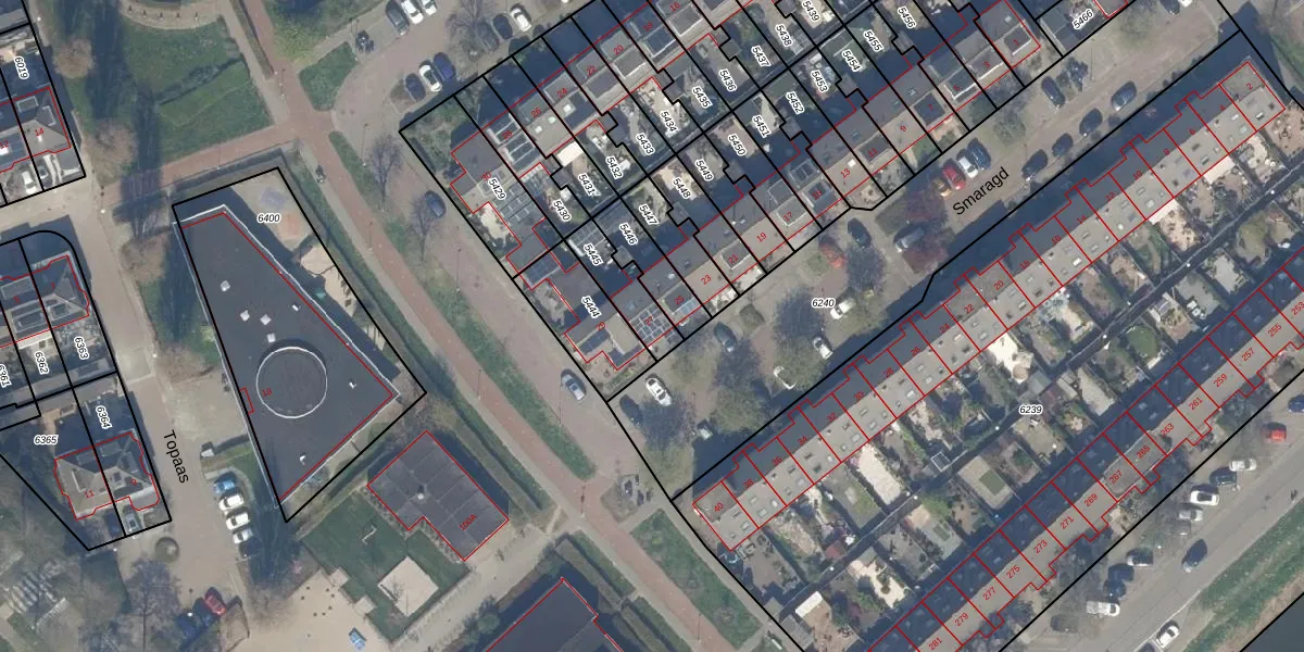 Gebruik de zoekbalk of klik op een perceel voor informatie over de adressen binnen dit perceel.