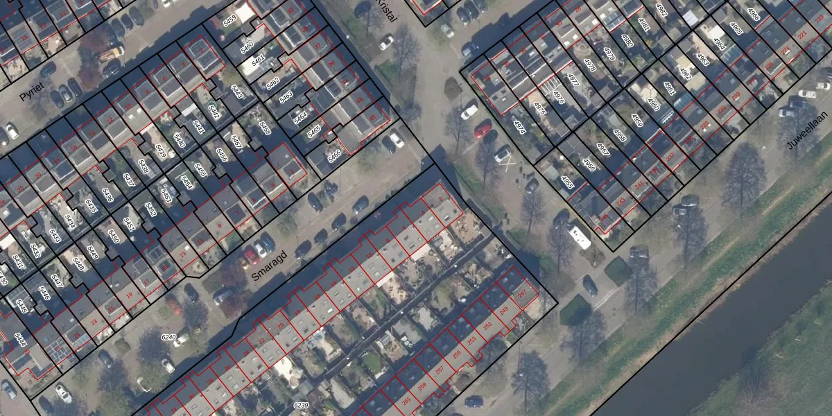 Het perceel waarop Smaragd 4 staat heeft een oppervlakte van 5440 m². Dit is een zeer groot perceel. De perceeloppervlakte wordt geregistreerd door het Kadaster. Gedetailleerde informatie over de maten van dit perceel kunt u vinden in het rapport Kadastrale kaart met maatvoering van Smaragd 4.