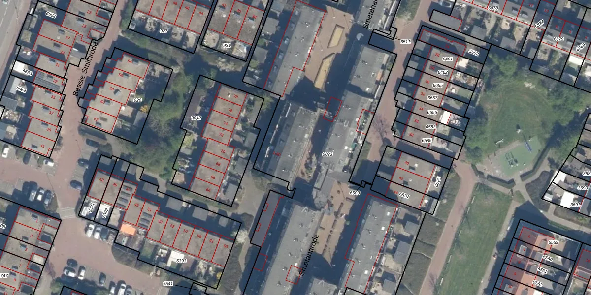 Het perceel waarop Smetanarode 27 staat heeft een oppervlakte van 5282 m². Dit is een zeer groot perceel. De perceeloppervlakte wordt geregistreerd door het Kadaster. Gedetailleerde informatie over de maten van dit perceel kunt u vinden in het rapport Kadastrale kaart met maatvoering van Smetanarode 27.