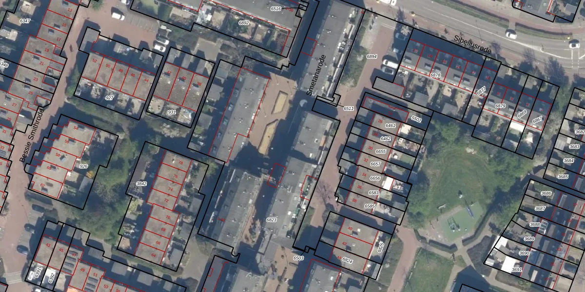 Het perceel waarop Smetanarode 36 staat heeft een oppervlakte van 5282 m². Dit is een zeer groot perceel. De perceeloppervlakte wordt geregistreerd door het Kadaster. Gedetailleerde informatie over de maten van dit perceel kunt u vinden in het rapport Kadastrale kaart met maatvoering van Smetanarode 36.