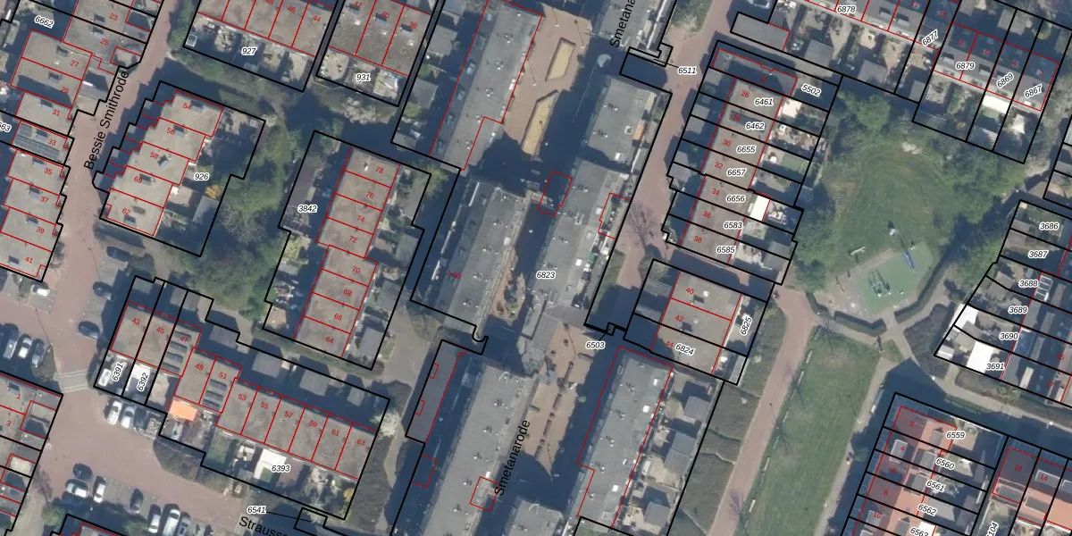 Het perceel waarop Smetanarode 52 staat heeft een oppervlakte van 5282 m². Dit is een zeer groot perceel. De perceeloppervlakte wordt geregistreerd door het Kadaster. Gedetailleerde informatie over de maten van dit perceel kunt u vinden in het rapport Kadastrale kaart met maatvoering van Smetanarode 52.