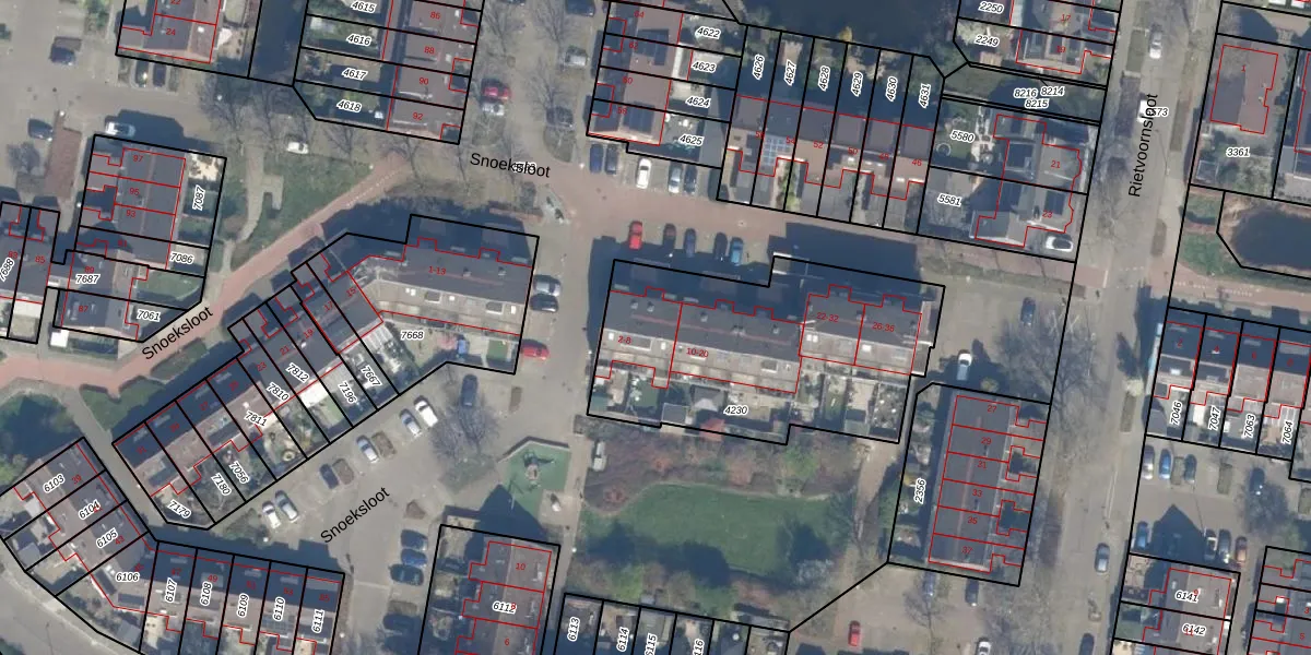 Het perceel waarop Snoeksloot 4 staat heeft een oppervlakte van 1225 m². Dit is een zeer groot perceel. De perceeloppervlakte wordt geregistreerd door het Kadaster. Gedetailleerde informatie over de maten van dit perceel kunt u vinden in het rapport Kadastrale kaart met maatvoering van Snoeksloot 4.