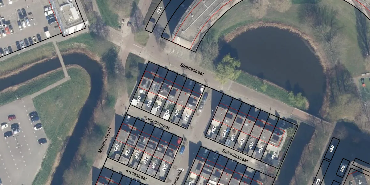 Spartastraat 5 is gelegen op kadastraal perceel ZTM00C3516. Deze kadastrale aanduiding is uniek en wordt gebruikt door het Kadaster om eigendomsrechten en andere zakelijke rechten vast te leggen. Het perceel maakt onderdeel uit van de kadastrale gemeente Zoetermeer.