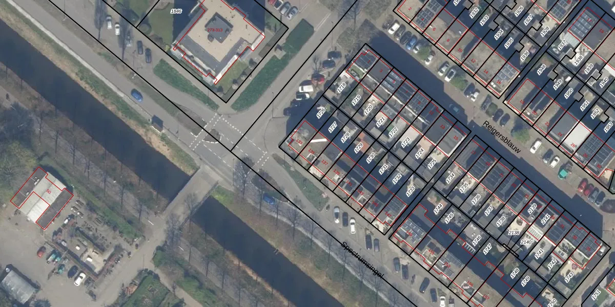 Gebruik de zoekbalk of klik op een perceel voor informatie over de adressen binnen dit perceel.