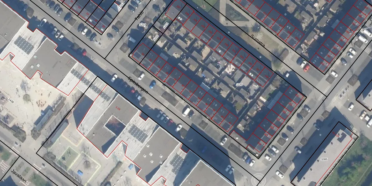 Het perceel waarop Spitsbergen 32 staat heeft een oppervlakte van 3439 m². Dit is een zeer groot perceel. De perceeloppervlakte wordt geregistreerd door het Kadaster. Gedetailleerde informatie over de maten van dit perceel kunt u vinden in het rapport Kadastrale kaart met maatvoering van Spitsbergen 32.