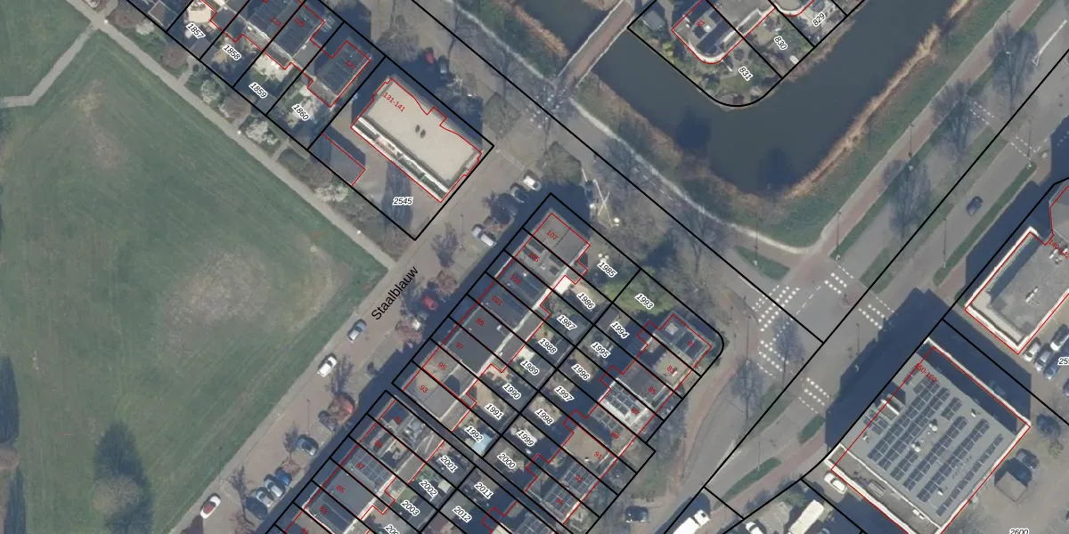 Gebruik de zoekbalk of klik op een perceel voor informatie over de adressen binnen dit perceel.