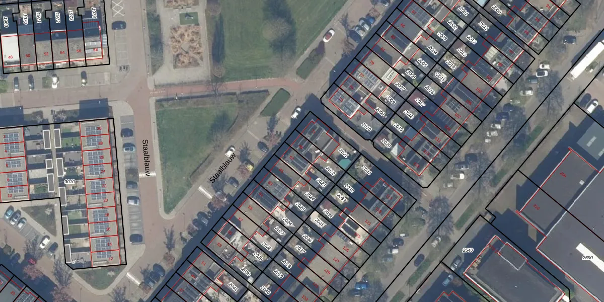 Het perceel waarop Staalblauw 69 staat heeft een oppervlakte van 119 m². Dit is een middelgroot perceel. De perceeloppervlakte wordt geregistreerd door het Kadaster. Gedetailleerde informatie over de maten van dit perceel kunt u vinden in het rapport Kadastrale kaart met maatvoering van Staalblauw 69.