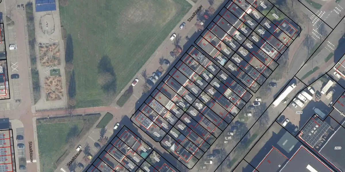 Het perceel waarop Staalblauw 83 staat heeft een oppervlakte van 119 m². Dit is een middelgroot perceel. De perceeloppervlakte wordt geregistreerd door het Kadaster. Gedetailleerde informatie over de maten van dit perceel kunt u vinden in het rapport Kadastrale kaart met maatvoering van Staalblauw 83.