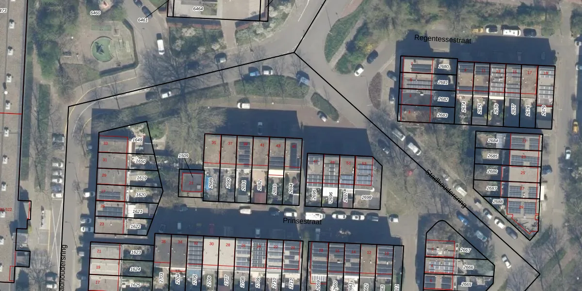 Gebruik de zoekbalk of klik op een perceel voor informatie over de adressen binnen dit perceel.