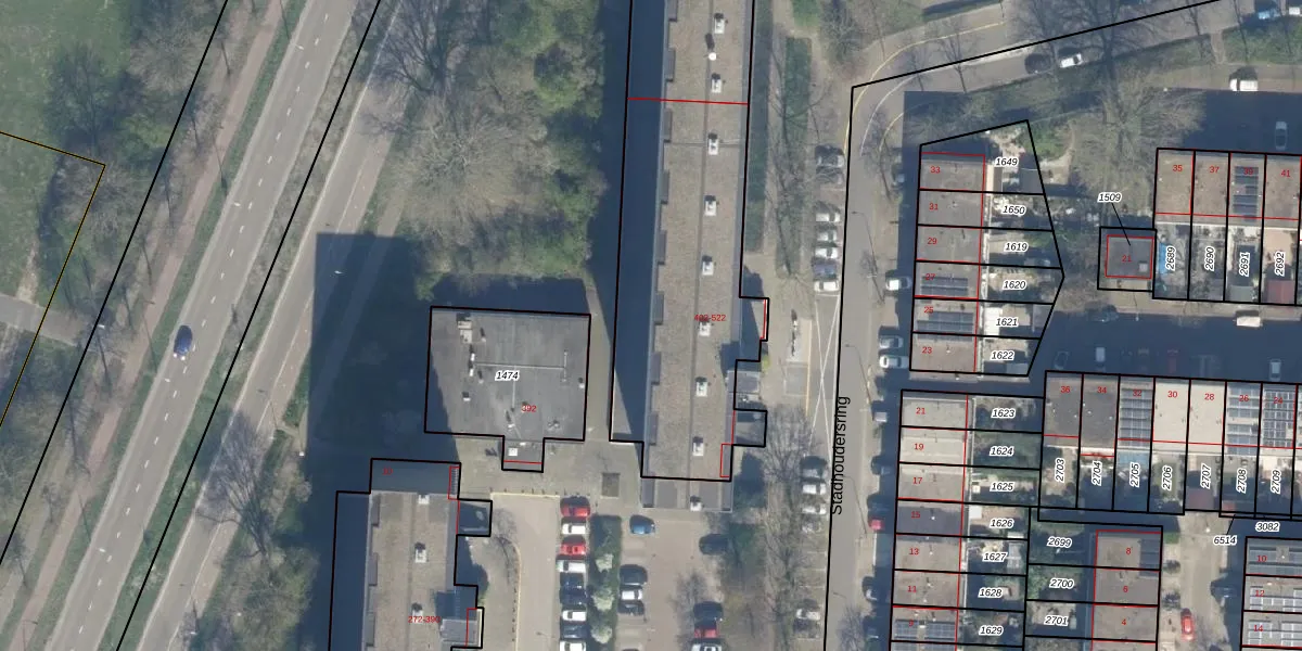 Het perceel waarop Stadhoudersring 452 staat heeft een oppervlakte van 3659 m². Dit is een zeer groot perceel. De perceeloppervlakte wordt geregistreerd door het Kadaster. Gedetailleerde informatie over de maten van dit perceel kunt u vinden in het rapport Kadastrale kaart met maatvoering van Stadhoudersring 452.