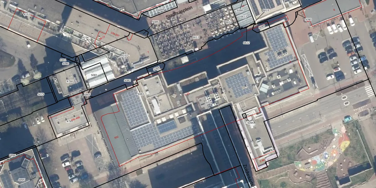 Het perceel waarop Stadhuisplein 23 staat heeft een oppervlakte van 8556 m². Dit is een zeer groot perceel. De perceeloppervlakte wordt geregistreerd door het Kadaster. Gedetailleerde informatie over de maten van dit perceel kunt u vinden in het rapport Kadastrale kaart met maatvoering van Stadhuisplein 23.