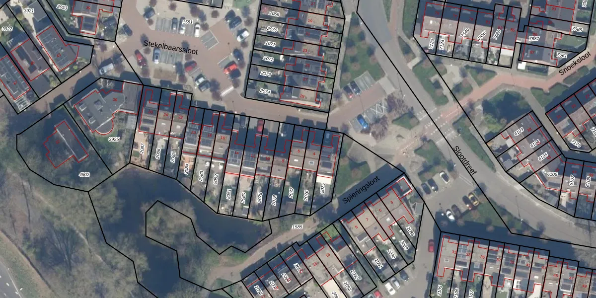 Gebruik de zoekbalk of klik op een perceel voor informatie over de adressen binnen dit perceel.