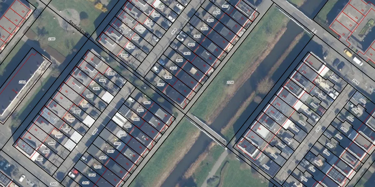 Gebruik de zoekbalk of klik op een perceel voor informatie over de adressen binnen dit perceel.
