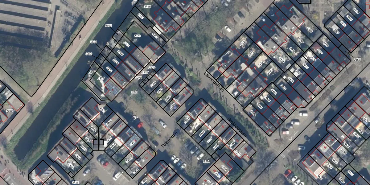 Gebruik de zoekbalk of klik op een perceel voor informatie over de adressen binnen dit perceel.