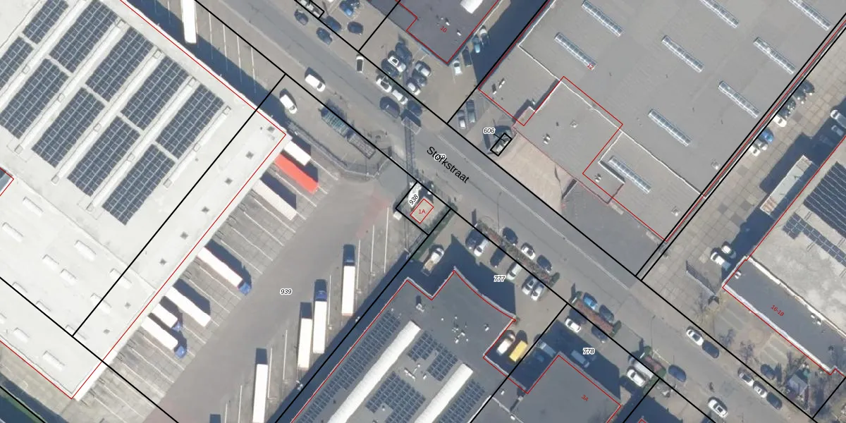 Gebruik de zoekbalk of klik op een perceel voor informatie over de adressen binnen dit perceel.