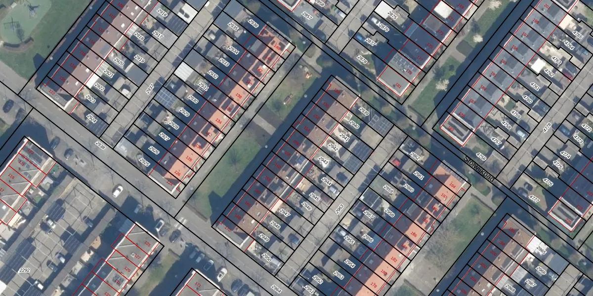 Gebruik de zoekbalk of klik op een perceel voor informatie over de adressen binnen dit perceel.