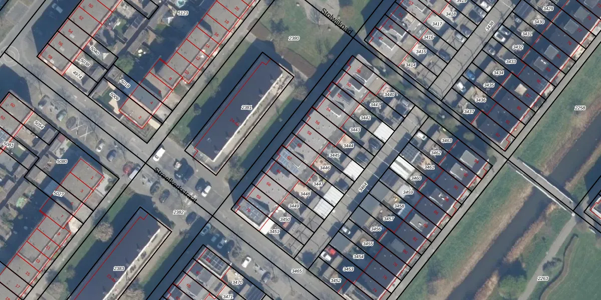 Gebruik de zoekbalk of klik op een perceel voor informatie over de adressen binnen dit perceel.