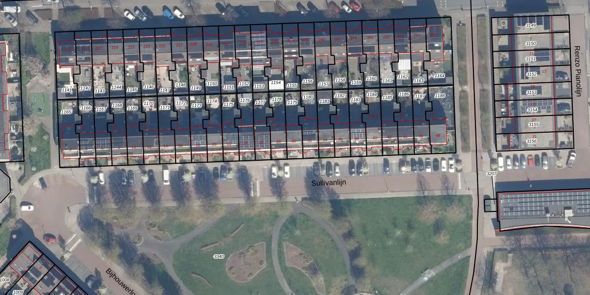 Gebruik de zoekbalk of klik op een perceel voor informatie over de adressen binnen dit perceel.