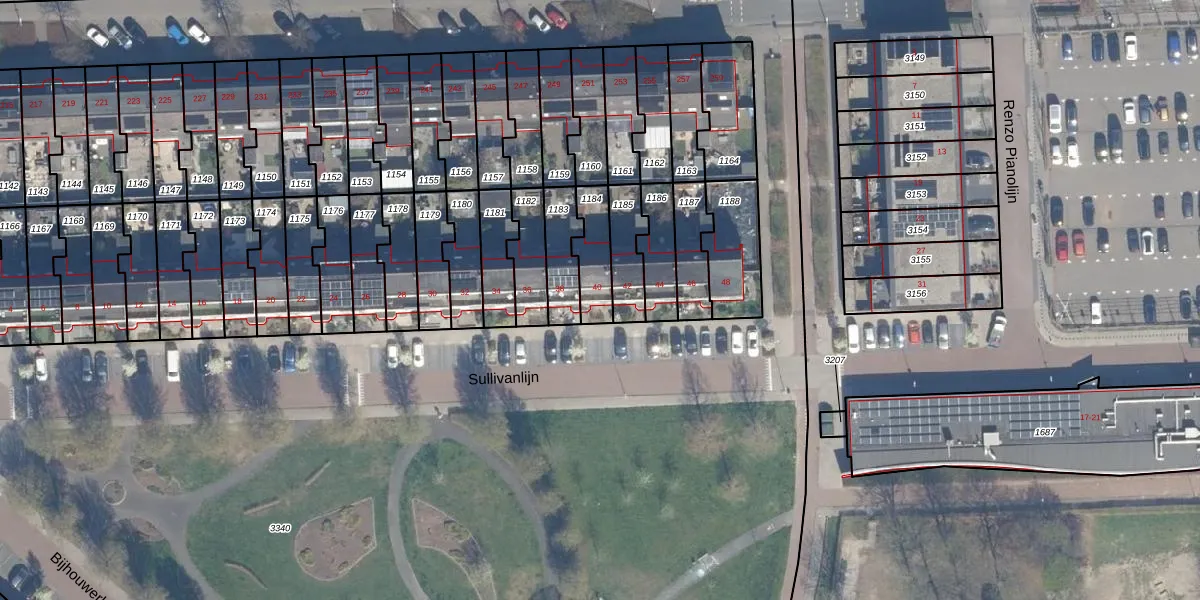 Het perceel waarop Sullivanlijn 40 staat heeft een oppervlakte van 124 m². Dit is een middelgroot perceel. De perceeloppervlakte wordt geregistreerd door het Kadaster. Gedetailleerde informatie over de maten van dit perceel kunt u vinden in het rapport Kadastrale kaart met maatvoering van Sullivanlijn 40.