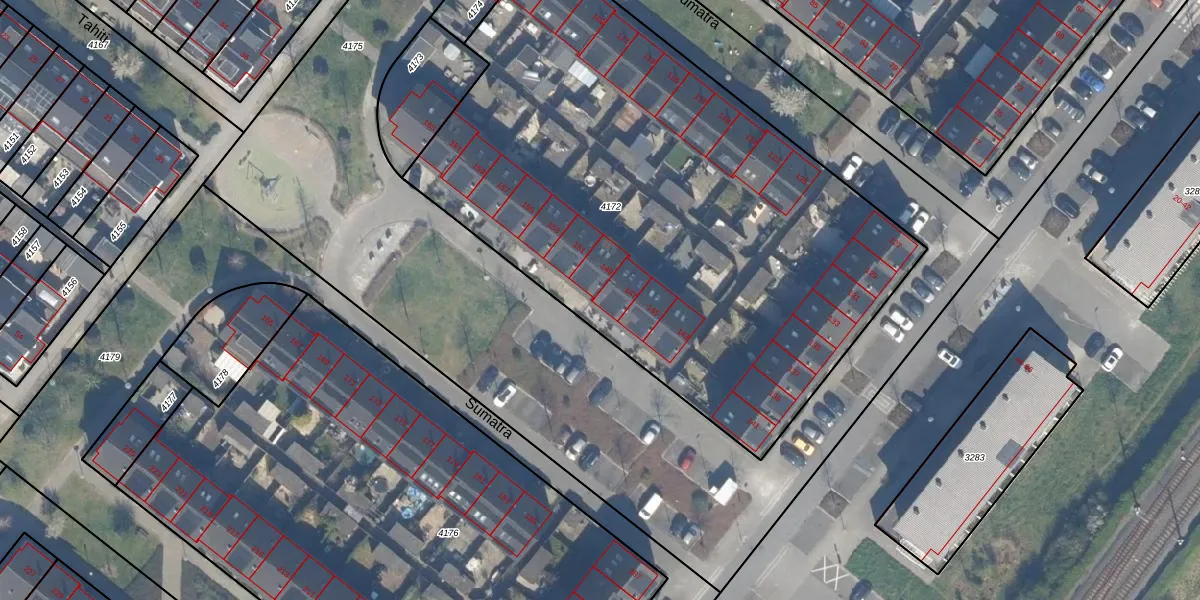 Het perceel waarop Sumatra 147 staat heeft een oppervlakte van 3544 m². Dit is een zeer groot perceel. De perceeloppervlakte wordt geregistreerd door het Kadaster. Gedetailleerde informatie over de maten van dit perceel kunt u vinden in het rapport Kadastrale kaart met maatvoering van Sumatra 147.