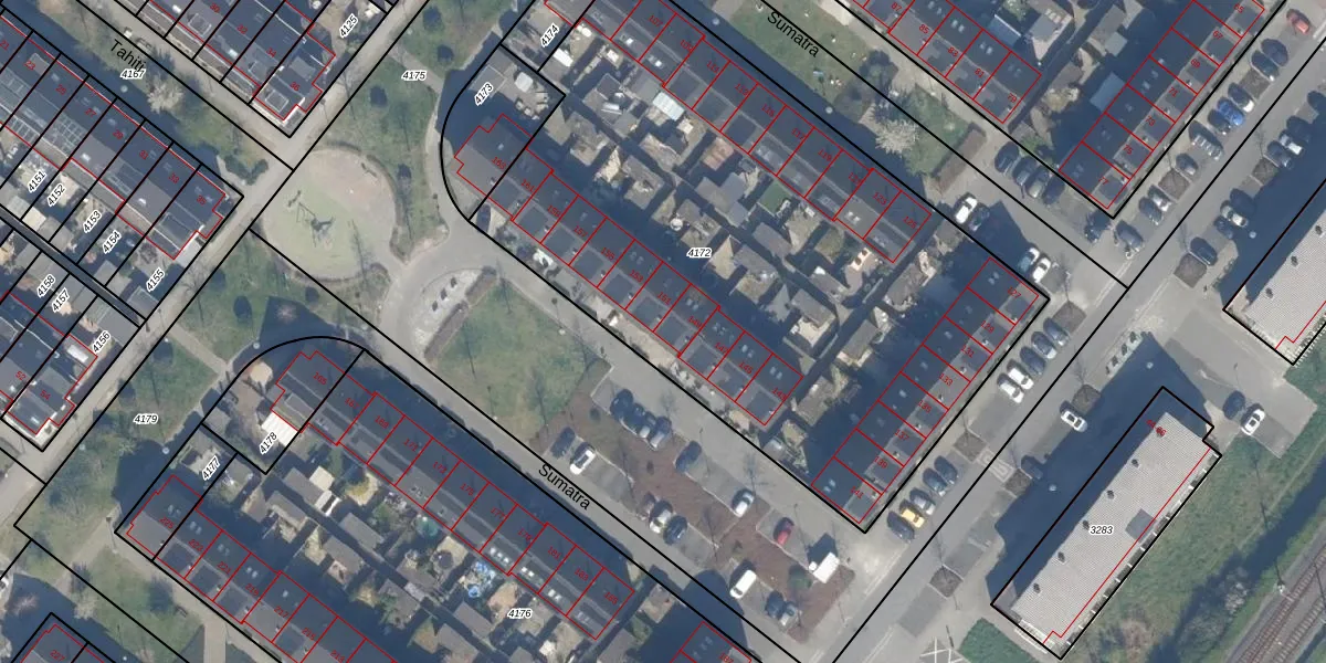Het perceel waarop Sumatra 149 staat heeft een oppervlakte van 3544 m². Dit is een zeer groot perceel. De perceeloppervlakte wordt geregistreerd door het Kadaster. Gedetailleerde informatie over de maten van dit perceel kunt u vinden in het rapport Kadastrale kaart met maatvoering van Sumatra 149.