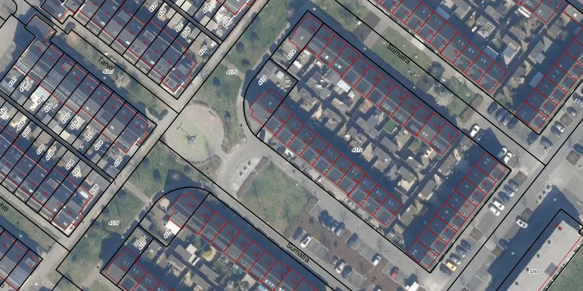 Het perceel waarop Sumatra 157 staat heeft een oppervlakte van 3544 m². Dit is een zeer groot perceel. De perceeloppervlakte wordt geregistreerd door het Kadaster. Gedetailleerde informatie over de maten van dit perceel kunt u vinden in het rapport Kadastrale kaart met maatvoering van Sumatra 157.
