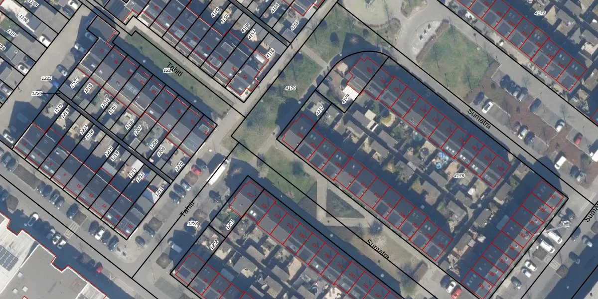 Het perceel waarop Sumatra 223 staat heeft een oppervlakte van 3545 m². Dit is een zeer groot perceel. De perceeloppervlakte wordt geregistreerd door het Kadaster. Gedetailleerde informatie over de maten van dit perceel kunt u vinden in het rapport Kadastrale kaart met maatvoering van Sumatra 223.