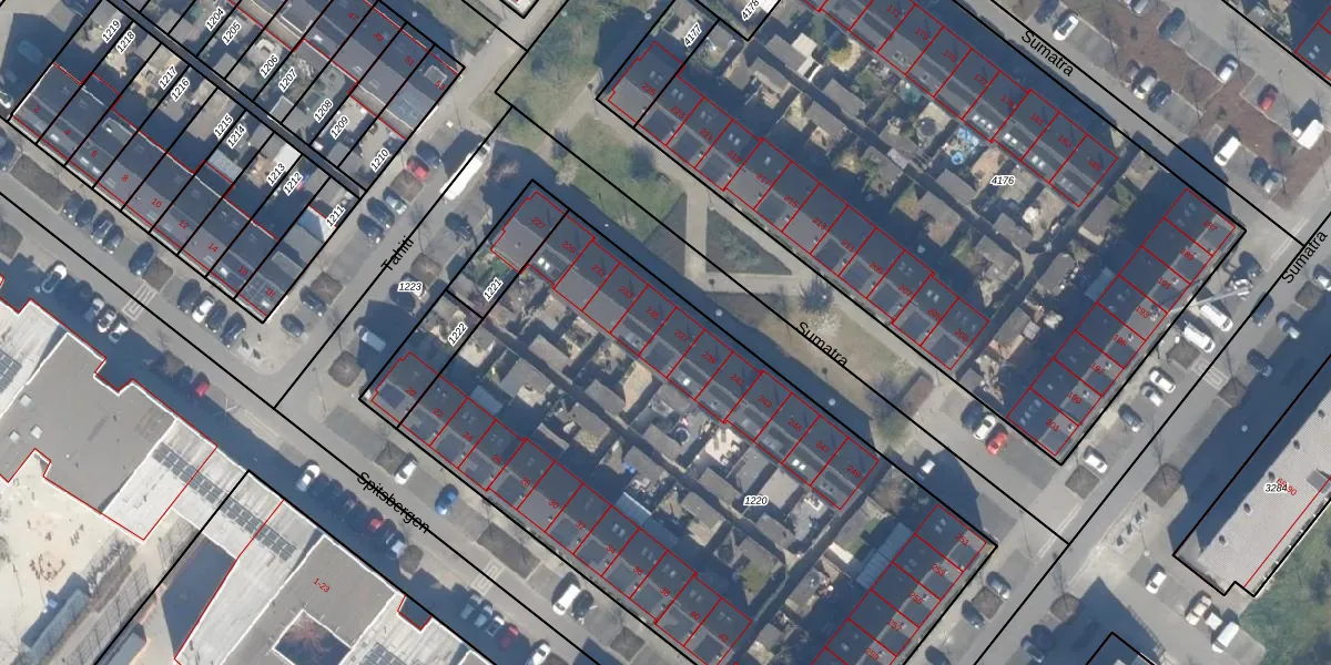 Het perceel waarop Sumatra 237 staat heeft een oppervlakte van 3439 m². Dit is een zeer groot perceel. De perceeloppervlakte wordt geregistreerd door het Kadaster. Gedetailleerde informatie over de maten van dit perceel kunt u vinden in het rapport Kadastrale kaart met maatvoering van Sumatra 237.
