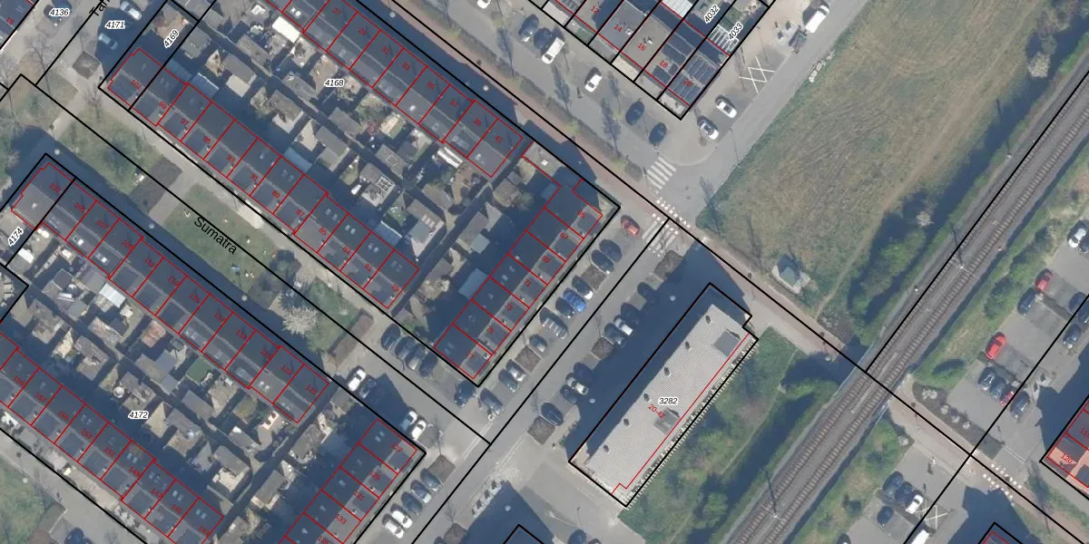 Het perceel waarop Sumatra 69 staat heeft een oppervlakte van 3440 m². Dit is een zeer groot perceel. De perceeloppervlakte wordt geregistreerd door het Kadaster. Gedetailleerde informatie over de maten van dit perceel kunt u vinden in het rapport Kadastrale kaart met maatvoering van Sumatra 69.