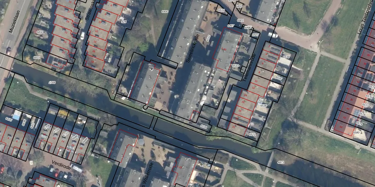 Het perceel waarop Sweelinckrode 24 staat heeft een oppervlakte van 2839 m². Dit is een zeer groot perceel. De perceeloppervlakte wordt geregistreerd door het Kadaster. Gedetailleerde informatie over de maten van dit perceel kunt u vinden in het rapport Kadastrale kaart met maatvoering van Sweelinckrode 24.